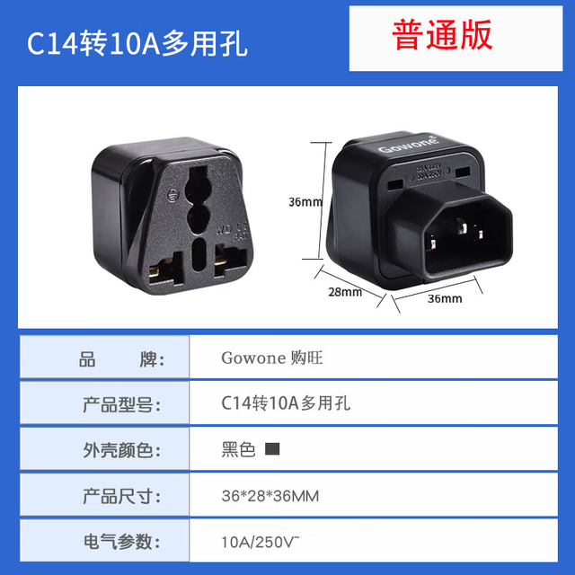 Gowone 机房服务器PDU转换接头c13品字尾转10A多用孔全球通用转换插座C14转10A多用孔