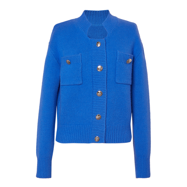 OUSILU 欧丝璐 通勤百搭纯羊绒开衫外套女12OSL223041 天蓝 M