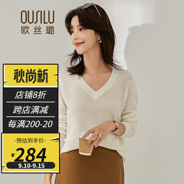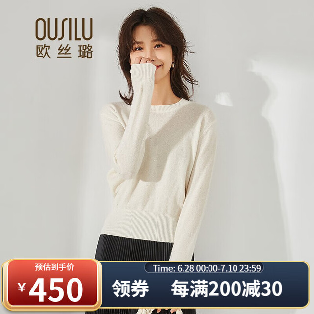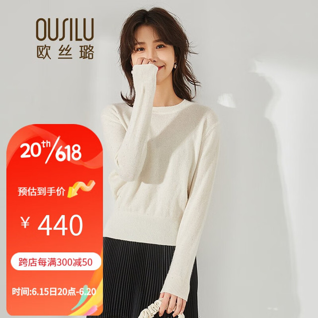 OUSILU 欧丝璐 秋冬新品圆领简约百搭纯羊绒衫女11OSL213087 奶白 95/S