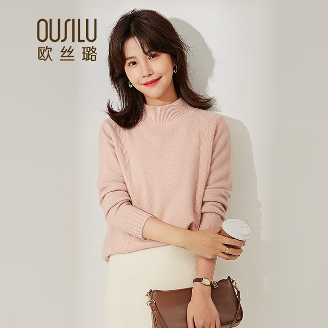OUSILU 欧丝璐 秋冬新款纯色半高领简约打底纯羊绒衫女10OSL203098 肉粉 100/M