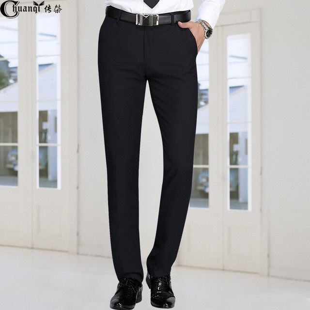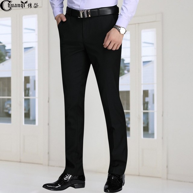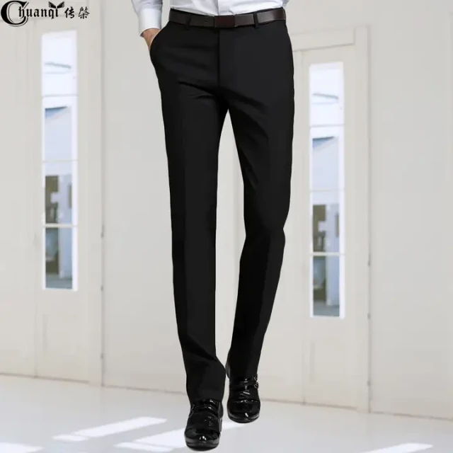 chuanqi 传棨 男士西裤修身商务西装裤休闲裤男上班面试正装西服裤子 黑色常规款 332.5尺