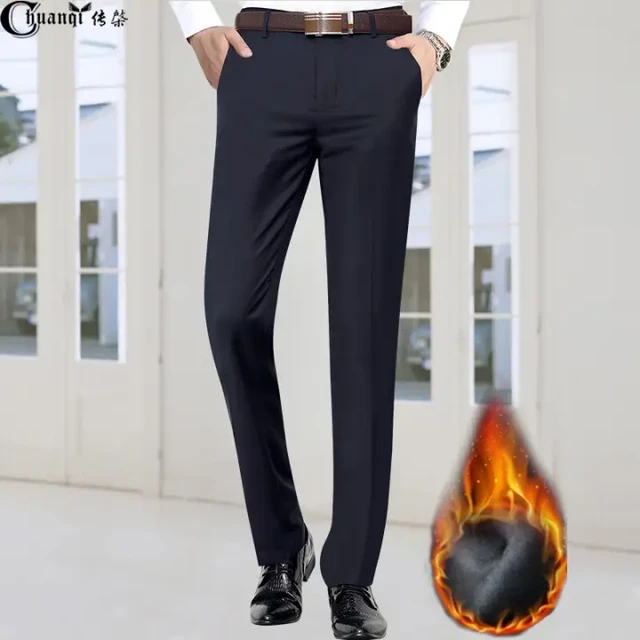 传棨 西裤男修身免烫西服裤商务休闲面试上班西装裤男士职业正装裤子 冬季含绒深蓝 282.1尺