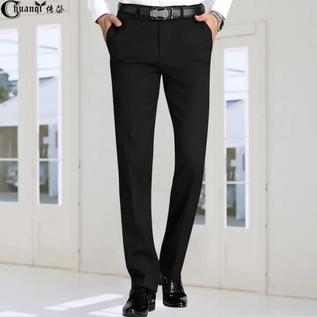 传棨 西裤男修身免烫西服裤商务休闲面试上班西装裤男士职业正装裤子 黑色加厚(无绒) 332.5尺