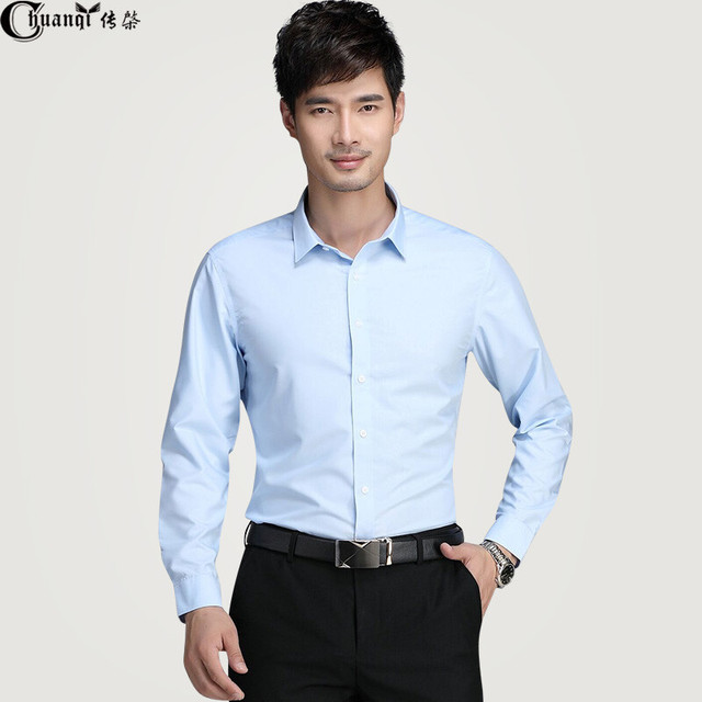 chuanqi 传棨 长袖衬衫男修身弹力韩版商务休闲职业正装上班面试衬衣 浅蓝色 40