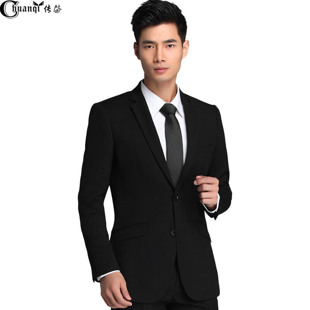 传棨 西装男修身商务休闲正装职业装上班外套西服男新浪伴郎结婚礼服 双扣黑色 (48)175/88A