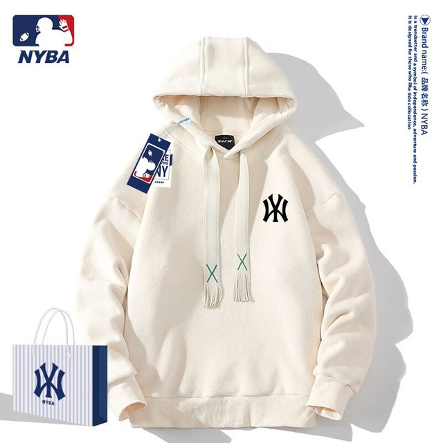 J-VAN 联名NYBA春装春秋款卫衣男女情侣装连帽外套衣服logo春季宽松上衣 米白色 L(110-140斤)