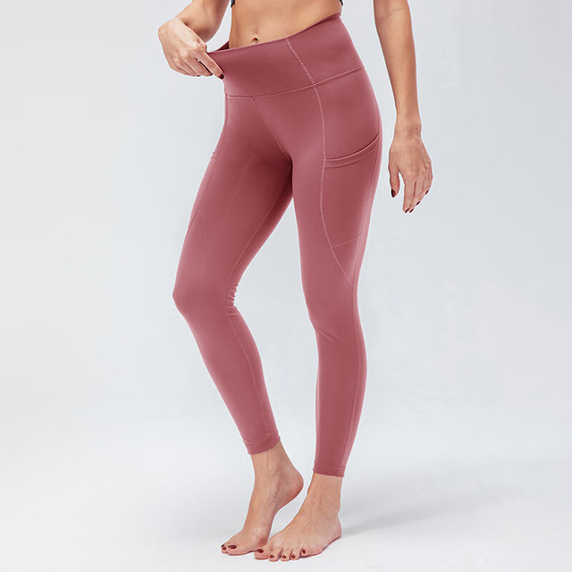 玉儿恋 瑜伽服裤女双面磨毛裸感高腰提臀跑步健身裤弹力紧身运动长裤