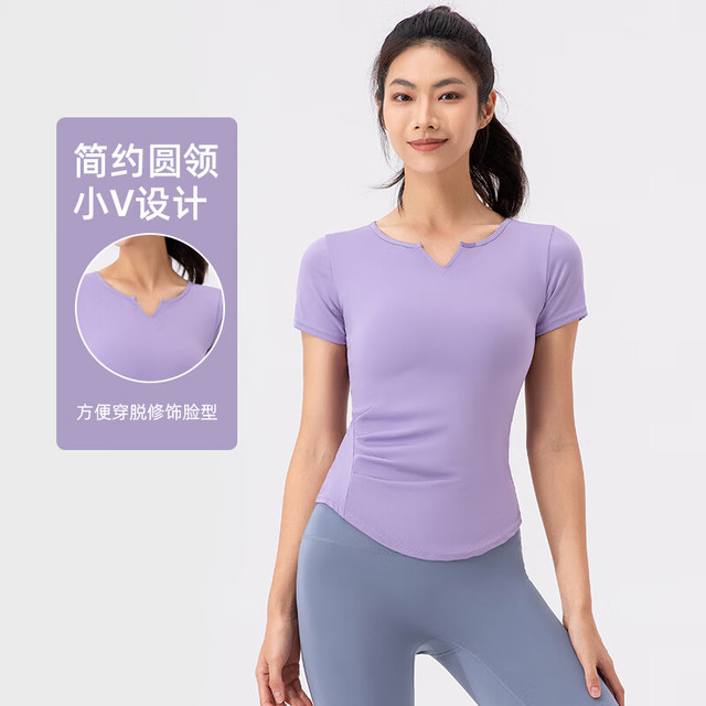 玉儿恋 瑜伽服速干V领短袖裸感健身褶皱T恤百搭运动上衣跑步短袖女
