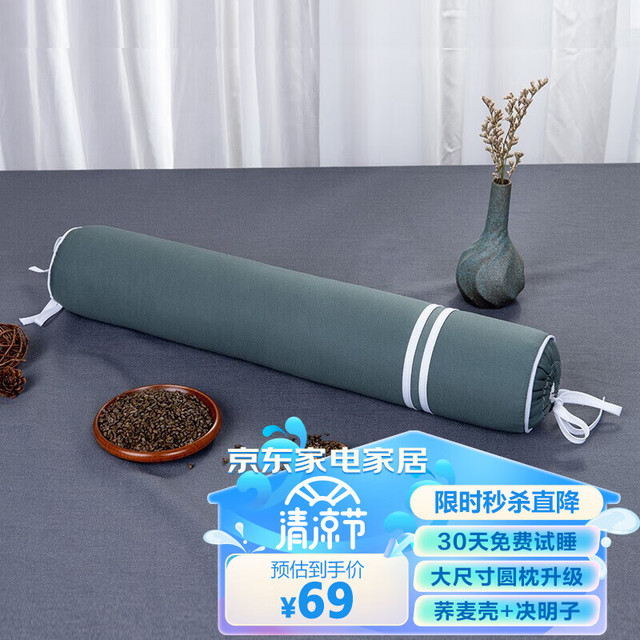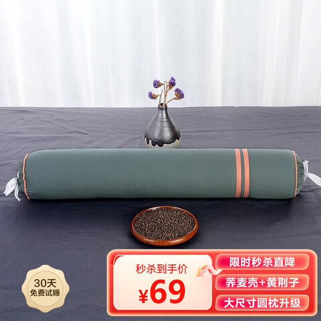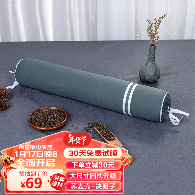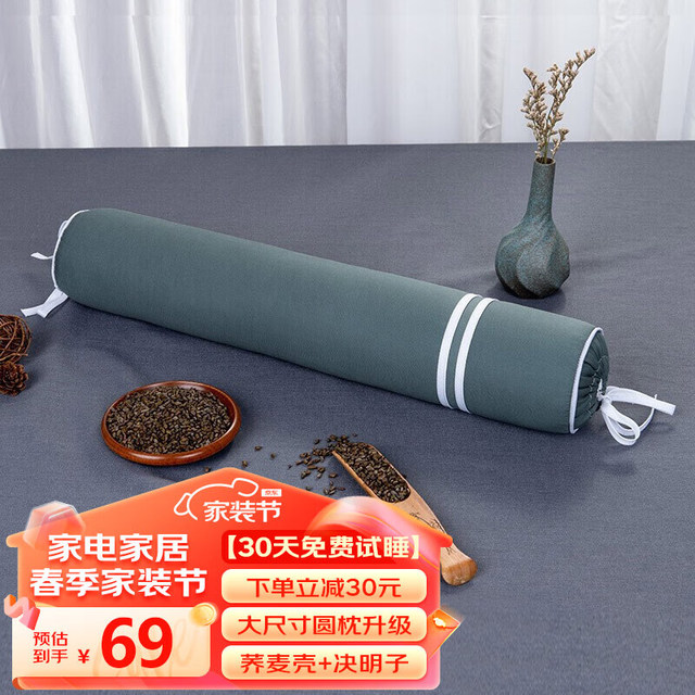 蜀国御 颈椎枕头圆形 成人糖果棒枕圆柱形四季通用花草硬枕头 荞麦壳黄金子决明子枕芯男士颈椎枕59元(需买2件,共118元)
