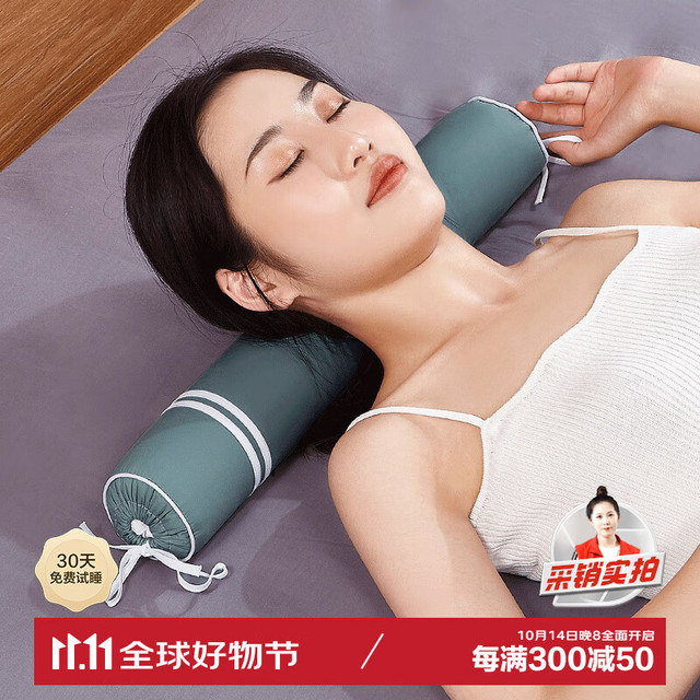蜀国御 颈椎枕头圆形 成人糖果棒枕圆柱形四季通用花草硬枕头 荞麦壳黄金子决明子枕芯 女士颈椎枕59元(需买2件,共118元)
