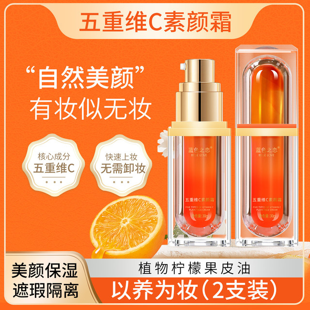 BLUE LOVE 蓝色之恋 五重维C素颜霜提亮肤色隔离自然美颜养肤保湿懒人VC素颜霜2支