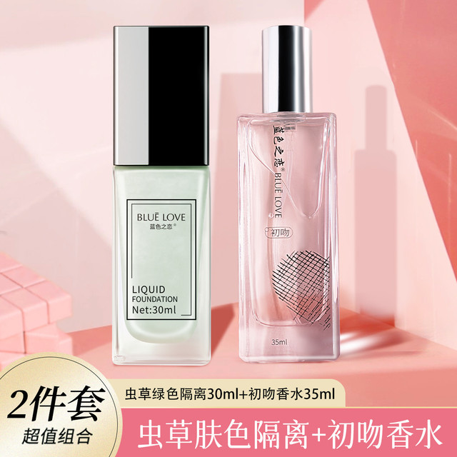 BLUE LOVE 蓝色之恋 持久淡香花漾清新自然+妆前轻薄水润虫草隔离霜女