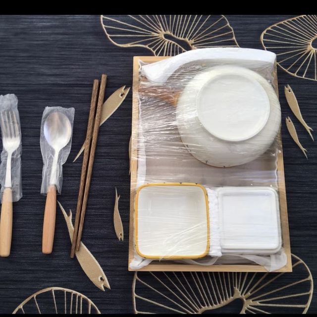 这个是一人食餐具套装,一个手把碗,两个方碟,一个勺子,一双筷子,一个叉子,这个海韵之歌的花纹很简单清新,这个碗可以进微波炉,洗碗机,烤箱,消毒柜,一个人的时候就...