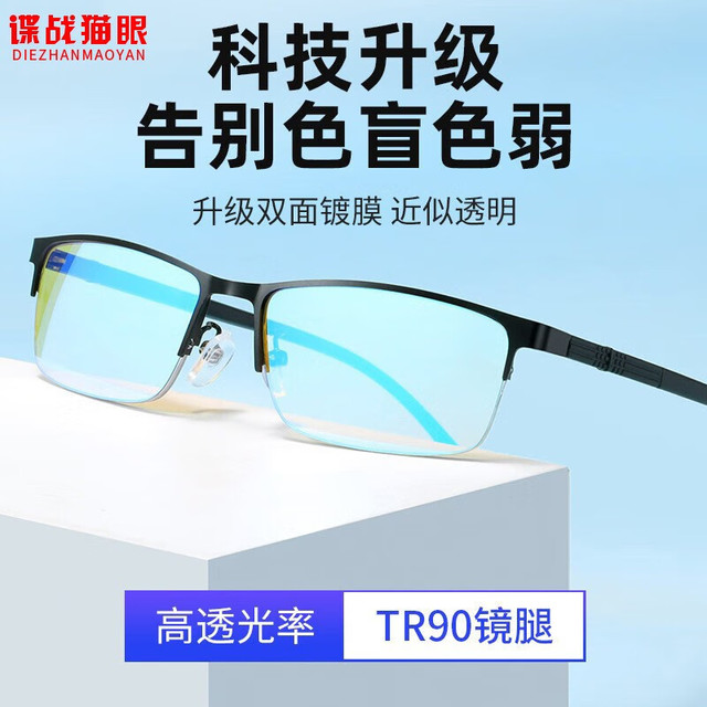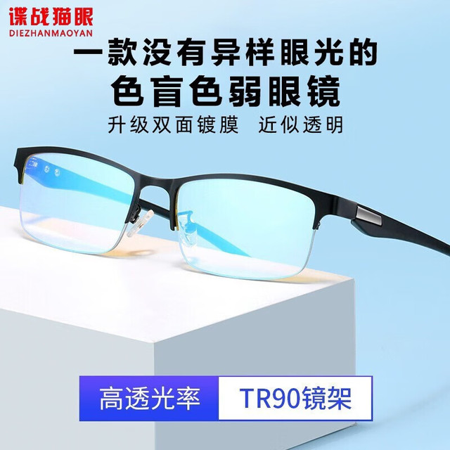 Dzmaois 谍战猫眼 色弱矫正眼镜 色盲眼镜红绿色弱眼镜 红绿色盲眼镜 黑色-169380.1元(需买2件,共160.2元)