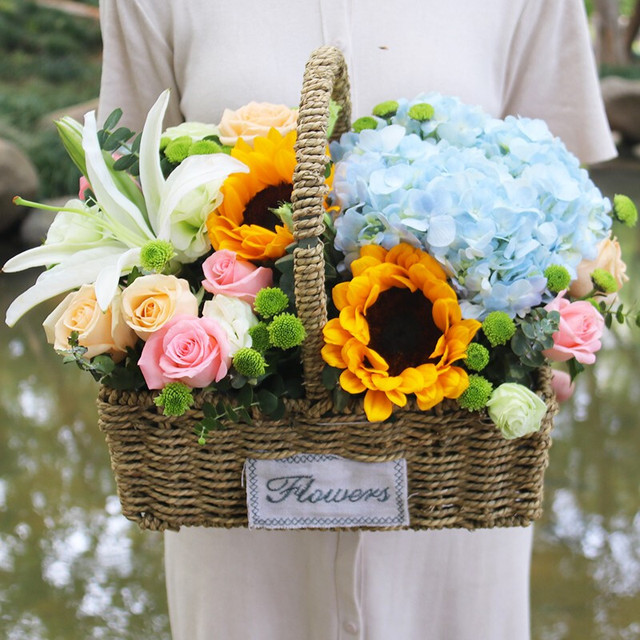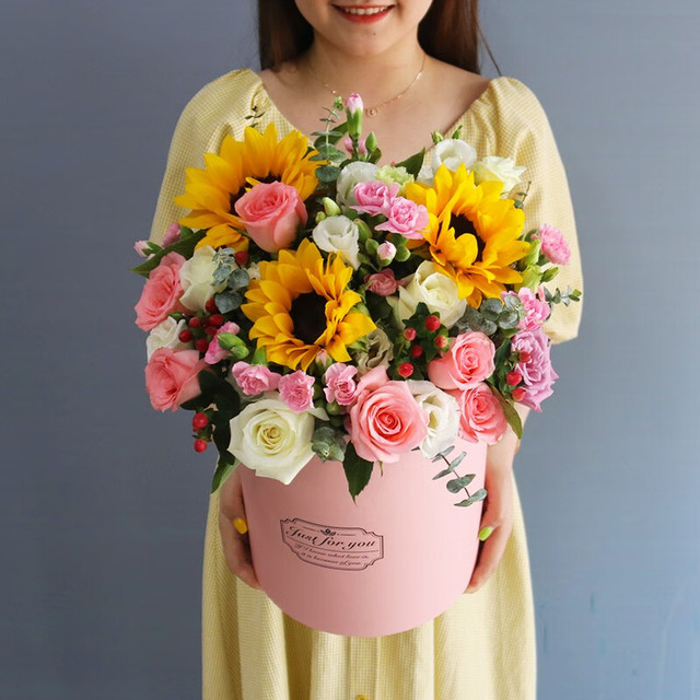 艾斯维娜 教师节鲜花速递向日葵混搭花束手提花篮生日礼物全国同城配送 向日葵玫瑰混搭抱抱桶205元(需用券)