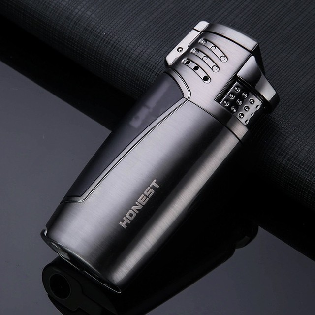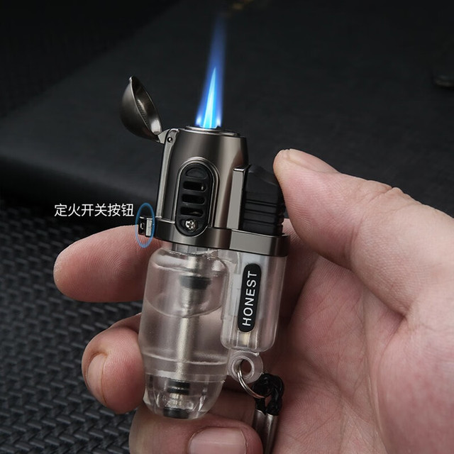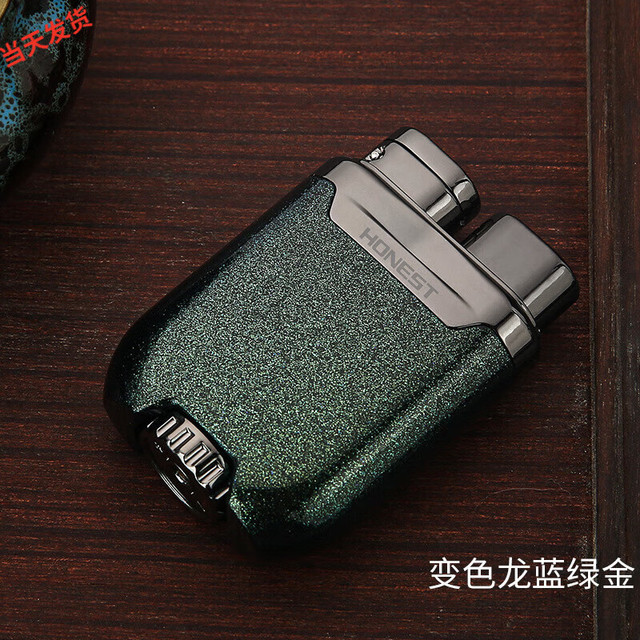 百诚 Honest 官网百诚防风充气金属打火机直冲蓝焰点烟器高端男士时尚礼物烟具 蓝绿金
