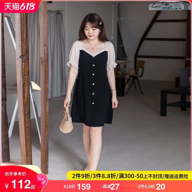 绮娑 2023夏季新款法式方领显瘦气质减龄胖MM藏肉连衣裙梨形大码女装