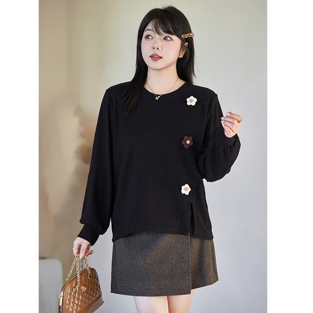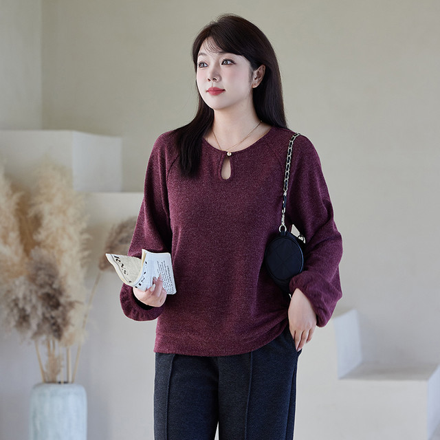 绮娑 显瘦大码胖MM长袖套头上衣女内搭装冬季新款小心机设计感打底衫女