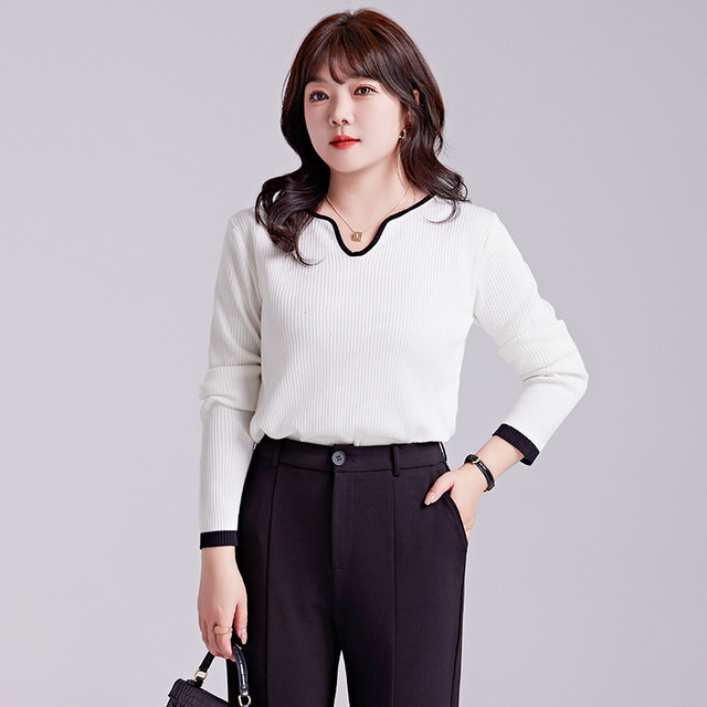 绮娑 秋冬新款大码女装上衣胖妹妹显瘦V领洋气针织衫宽松休闲套头毛衣