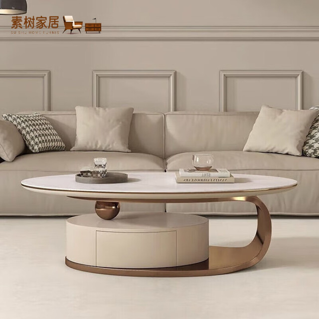 素树 家居2024新款口茶几现代极简家用储物意式茶几客厅小茶几圆形网红茶几