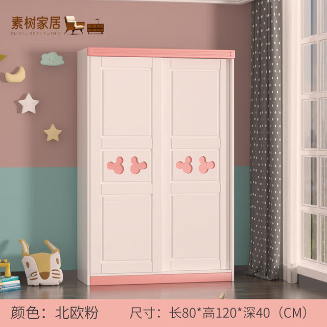 素树 家居小衣柜推拉移门家用男女衣橱简易储物柜卧室出租房矮子 粉色款120高80宽40深, 2门 x 组装