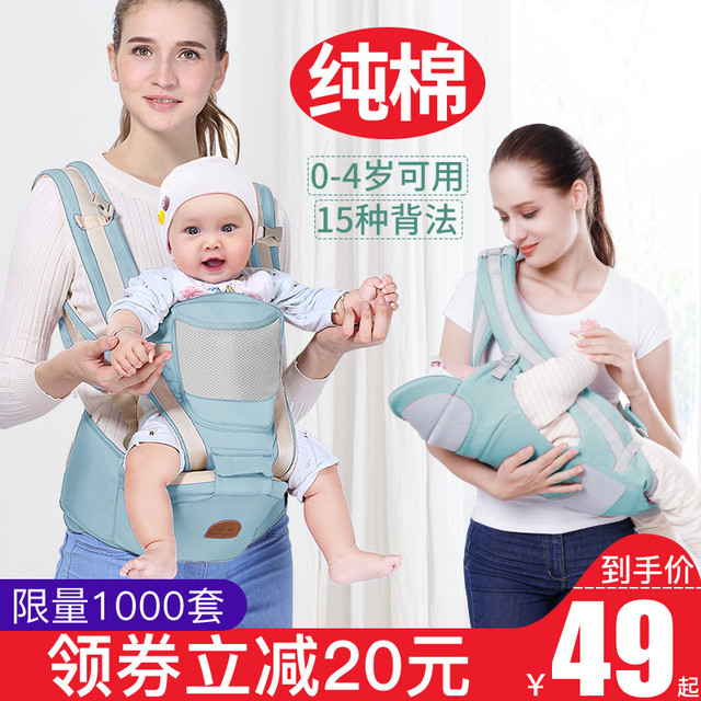 移动端:欢畅 婴儿背带腰凳二合一前后两用多功能轻便宝宝外出简易抱娃神器四季54元淘金币最高抵扣3.7元