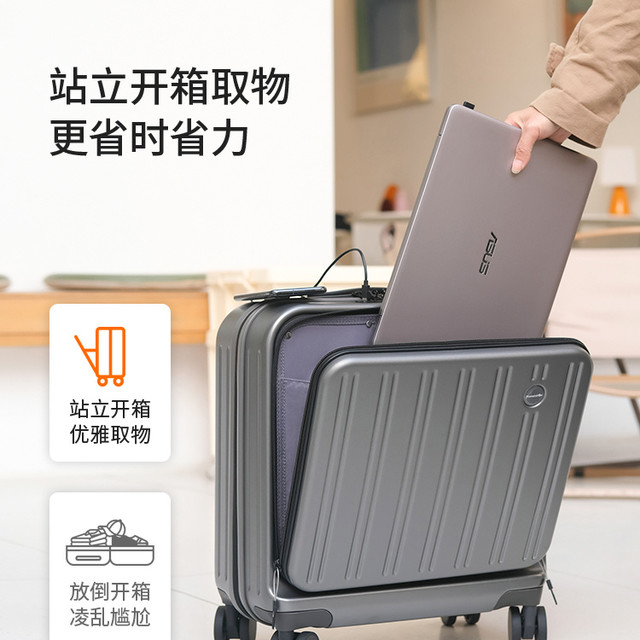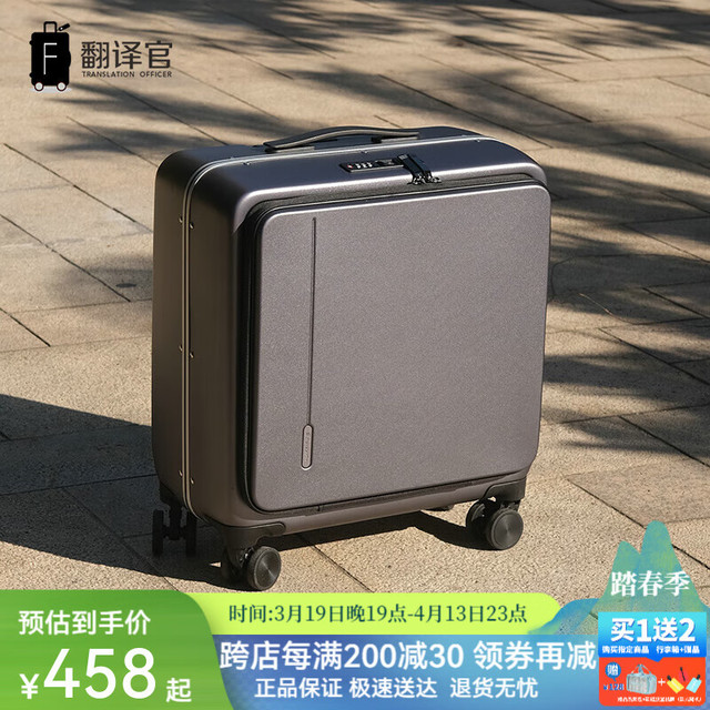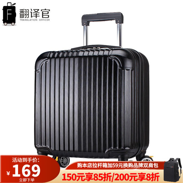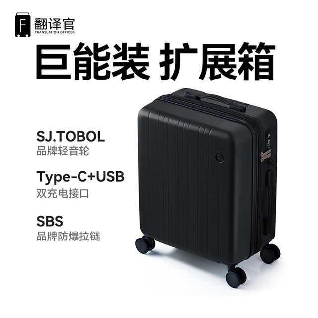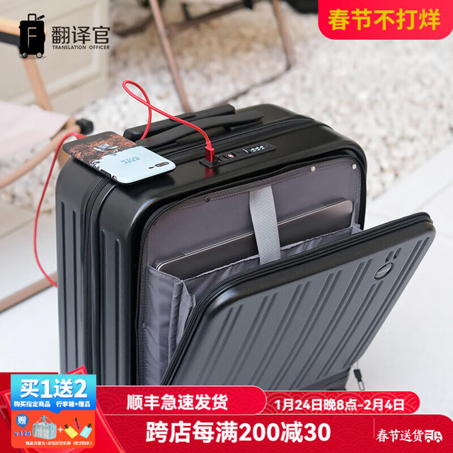 翻译官 拉杆箱登机前开盖侧开小型商务男行李箱轻便时尚女万向轮旅行密码 16英寸黑色横款前开USB343.92元(需用券)