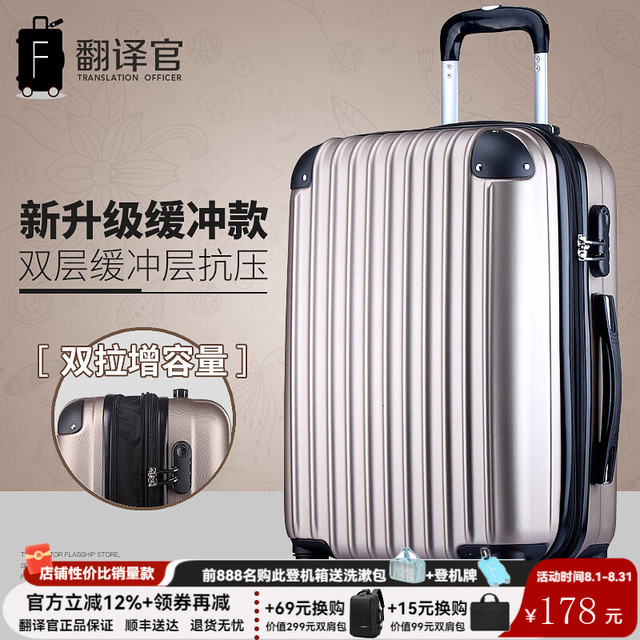 fanyiguan 翻译官 翻官行李箱旅行箱包女商务大容量拉杆万向轮硬密码登机男防刮抗压 香槟金-双层缓冲+双拉增容 24英寸中等193.71元(需买3件,共581.13元)