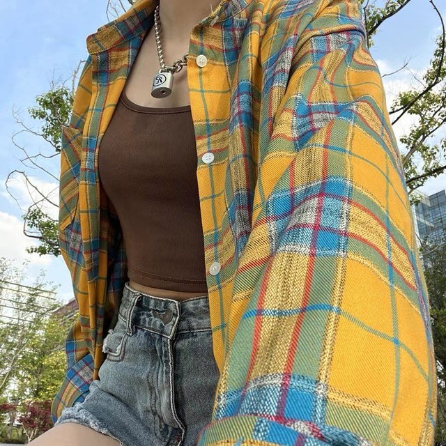 💡产品名称黄色长袖格子衫🔎产品描述棉质穿着舒适,不容易皱,无需熨烫很方便。✨体验亮点颜色也太秋天了吧!暖色调看着舒服,还能兼顾保暖,风度与温度两个都要!里面搭配...