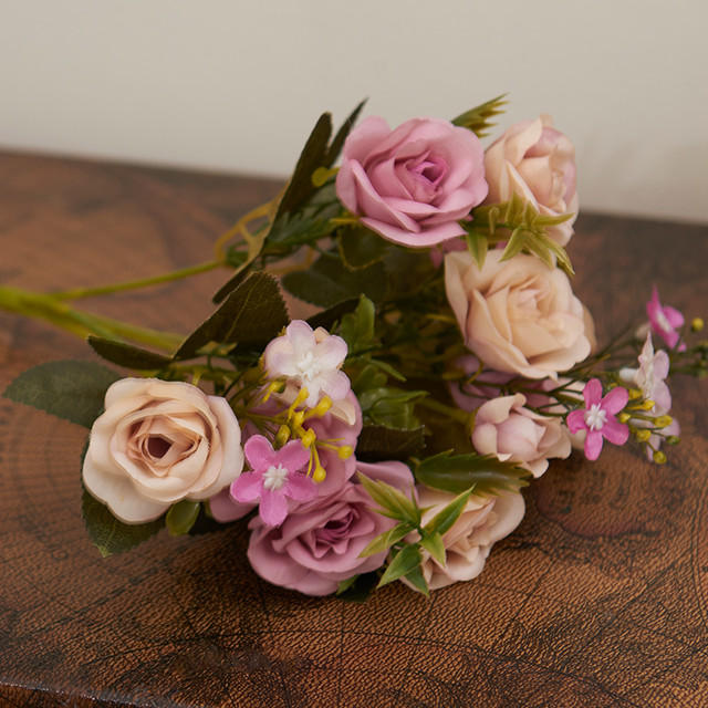 蒂拉欧式贵妃小玫瑰仿真把束假花客厅卧室家居装饰摆放花艺摆设 浅紫色单支