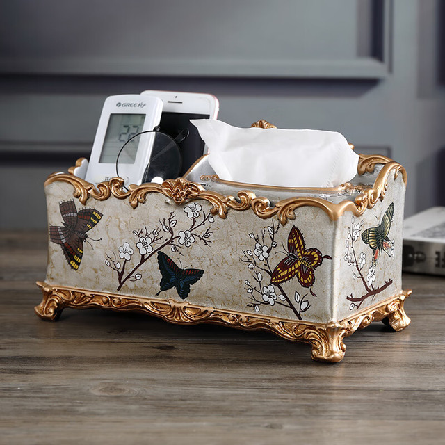 蒂拉客厅欧式纸巾盒多功能抽纸盒茶几家用创意装饰品摆件遥控器收纳盒 1000青梅蝶舞竖抽款