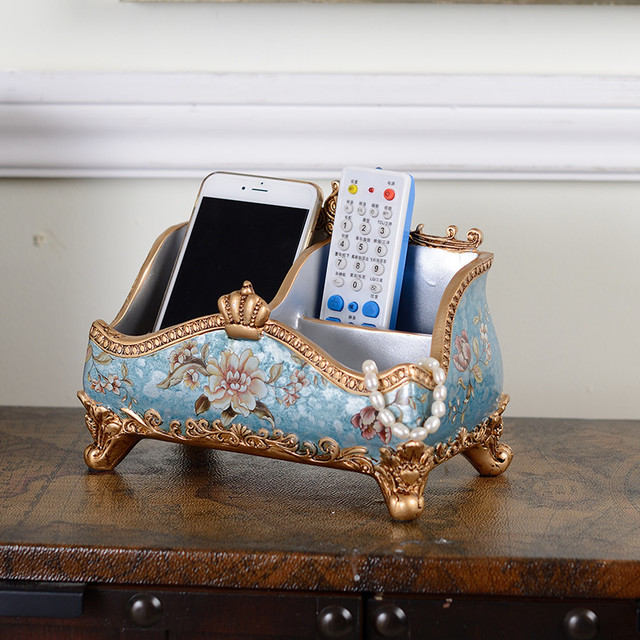 蒂拉 欧式创意茶几遥控器收纳盒整理盒收纳箱储物盒化妆品桌面杂物收纳 1032蓝色遇见款