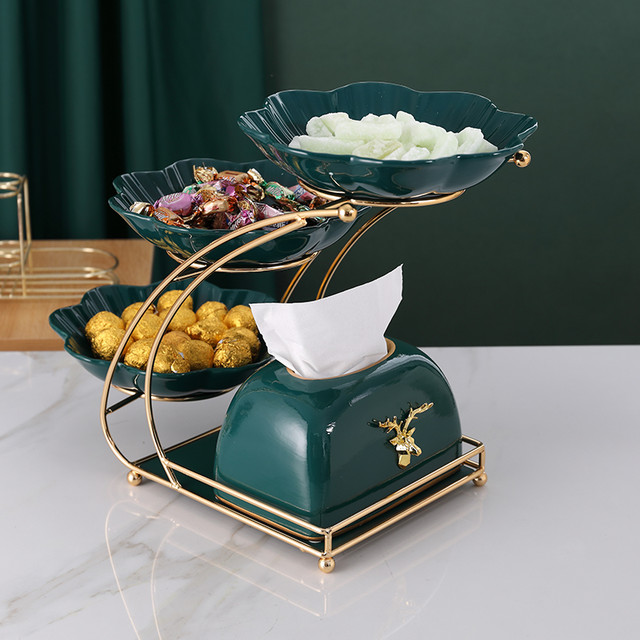 蒂拉北欧轻奢风水果盘子客厅茶几家用ins零食糖果点心多层干果盘 三层果盘+抽纸盒