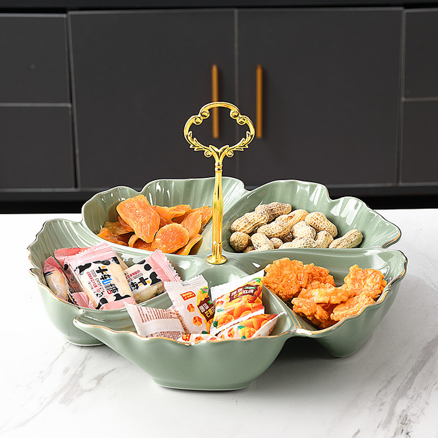 蒂拉 轻奢创意水果盘客厅家用零食盘多层果盘多格点心盘2022新年干果盘 单层果盘-抹茶绿