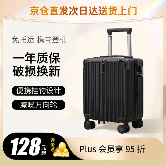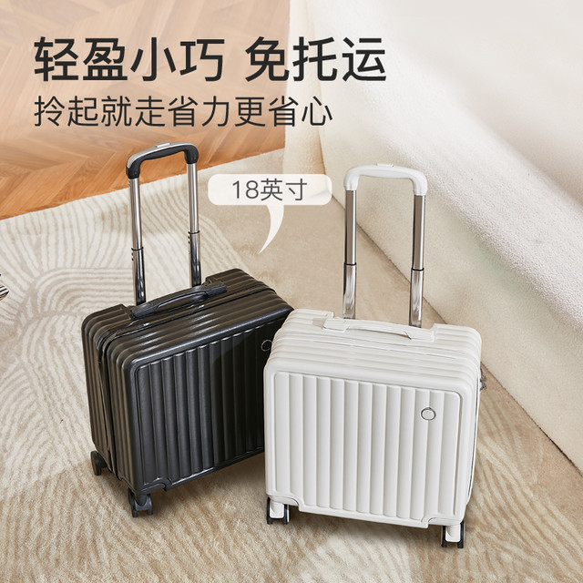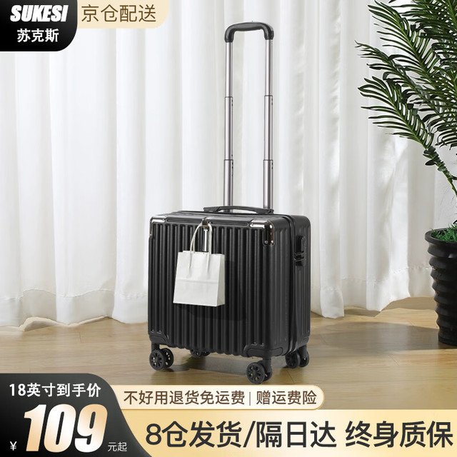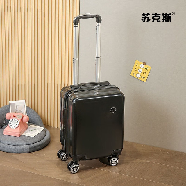 苏克斯 次日达小型行李箱轻便旅行箱携带登机箱儿童拉杆箱商务出差密码箱 钢琴黑 18英寸 2节拉杆