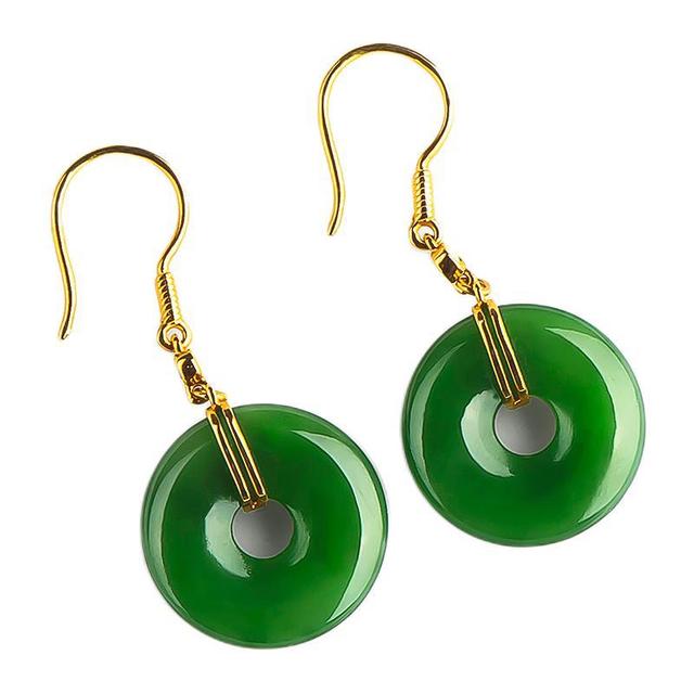 玉萌色 YMS16BKDZ827 平安扣18K黄金玉石耳环 1.13g