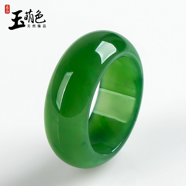 玉萌色 和田玉碧玉戒指玉石指环男女款和田玉扳指 配证书BJZ001-01 戒圈内径约17-17.5mm