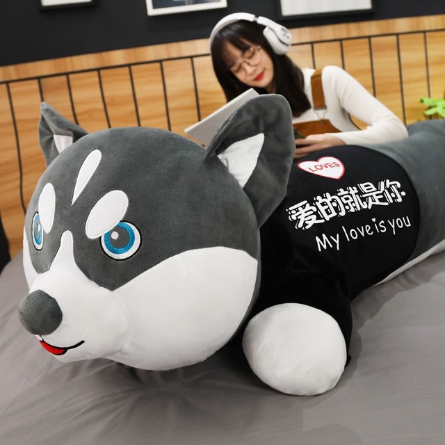 哈士奇毛绒玩具布娃娃公仔,长80cm,pp棉+水晶绒,触感舒服,当玩具当靠枕抱枕都不错。