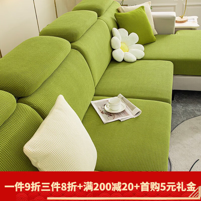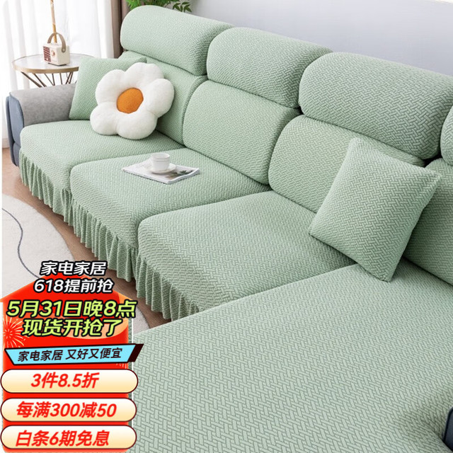 yibei 艺被 沙发套罩全包套裙边弹力防猫抓四季通用型组合贵妃位沙发笠 裙边-抹茶绿 靠