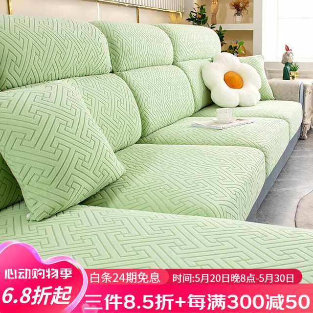 yibei 艺被 沙发套罩全包新中式结婚感防滑沙发坐垫套四季通用沙 弦思-抹茶绿 加大单人-宽65-95长65-95