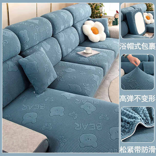 yibei 艺被 弹力沙发套罩全包感沙发笠四季通用型防猫抓盖布防尘全包可定制 super熊-孔雀蓝