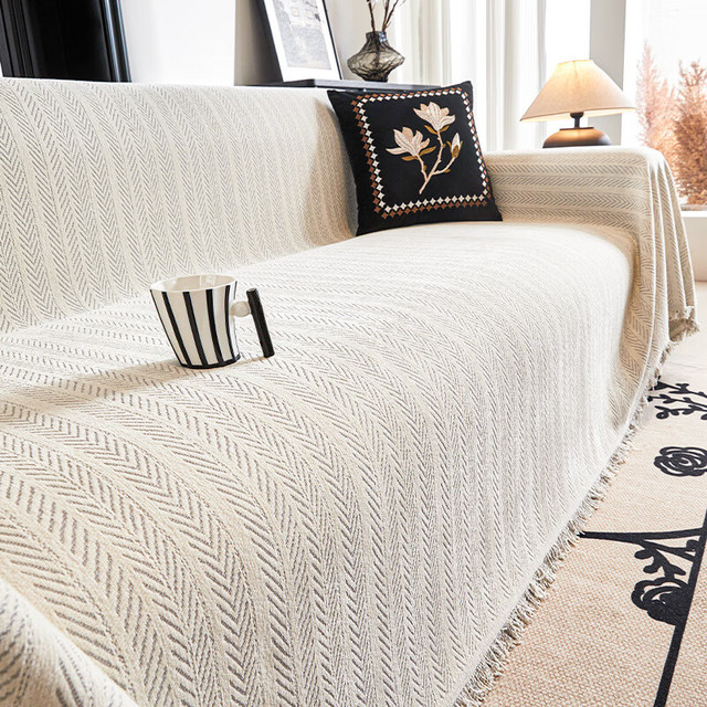 艺被 沙发盖布巾四季通用沙发垫子垫子布全包一片式遮盖罩布防猫抓 马到成功-白 180*340cm