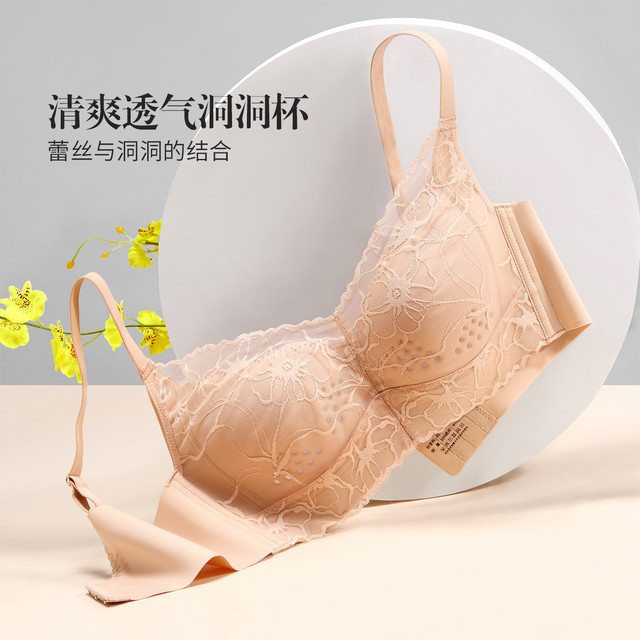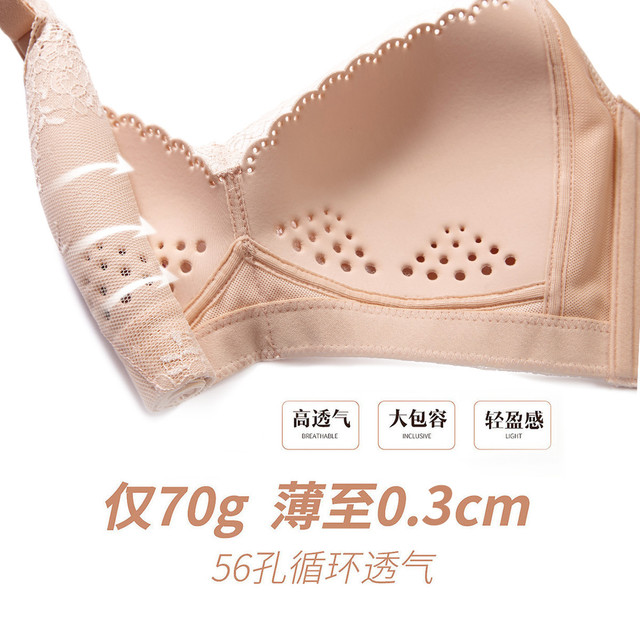 venies 芬怡 超薄内衣女大胸显小无钢圈收副乳性感蕾丝透气洞洞杯文胸896886.3元(需买2件,共172.6元)