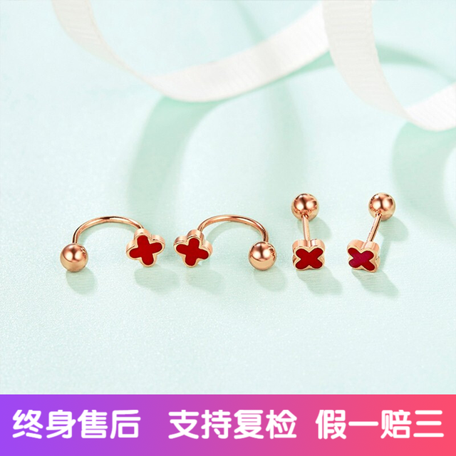 帝普 18k彩金玫瑰金四叶草爱心圆点u直款 18ku形拧螺丝耳钉 帝普珠宝 四叶草u款一对553元(需用券)
