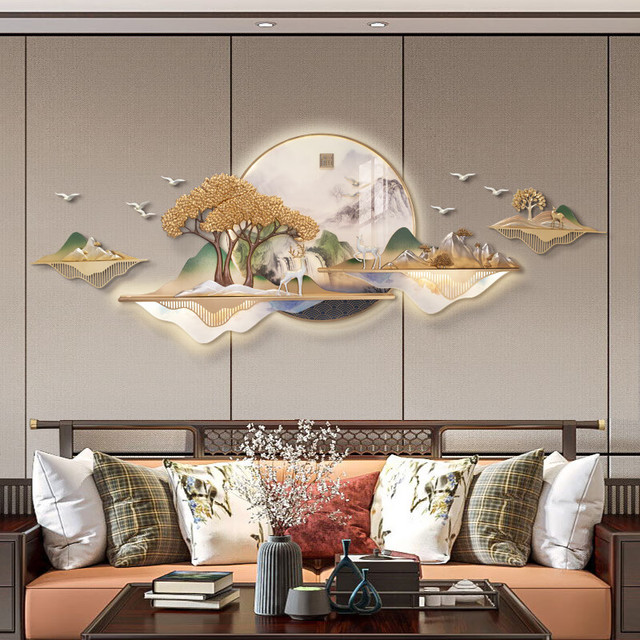 RELIFE 福雕家饰 客厅装饰画现代简约壁画极简新中式沙发背景墙画轻奢餐厅挂画 福山福境-灯光遥控75*238