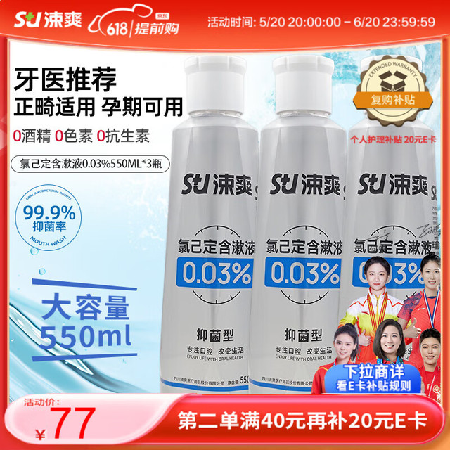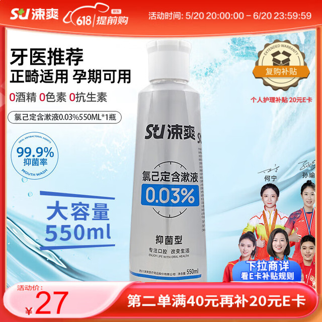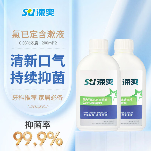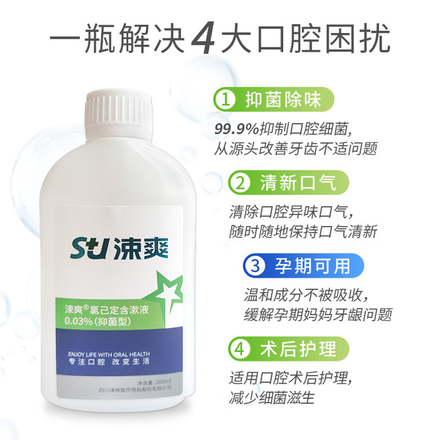 涑爽 精油氯己定漱口水儿童正畸医用抑菌含漱液口臭异味牙龈红肿痛14.93元(需买3件,共44.78元)