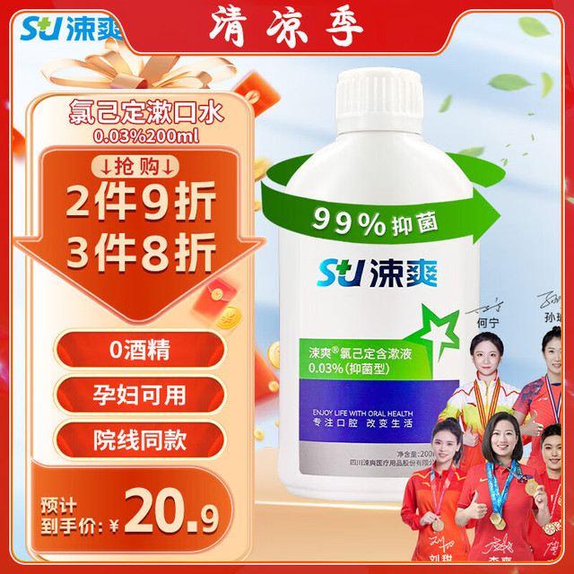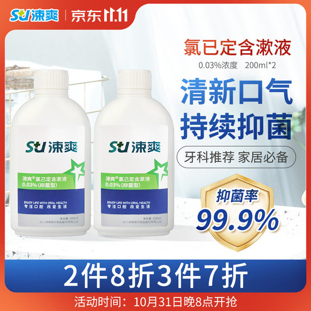 涑爽 氯己定漱口水0.03%浓度含漱液抑菌清洁口腔异味漱口液200ml 1盒14.85元(需买3件,共44.55元)