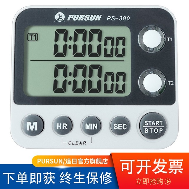 追日牌两通道正倒数计时器 厨房定时器 秒表计时器 发光按键 PS-390 白色