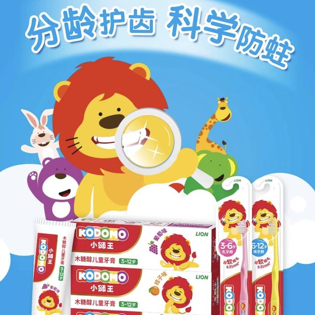 88VIP:LION KODOMO 小狮王 木糖醇儿童牙膏50g×3支12.34元(需买2件,需用券)