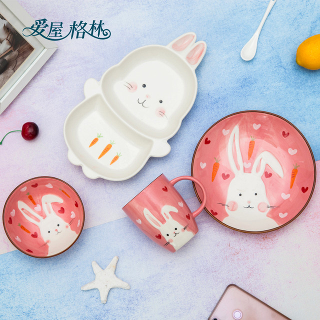 爱屋格林 创意耐高温可微波儿童餐具套装家用宝宝卡通杯子饭碗盘子4.9元(需买2件,共9.8元)